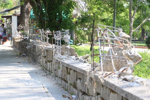 Hàng rào bằng bê tông xây dựng từ năm 1982 ở công viên Thương Bạc được tháo dỡ. Ảnh: Võ Thạnh. |