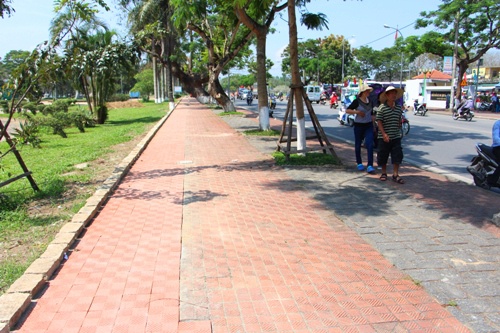 Hàng rào công viên được tháo dỡ giúp vỉa hè thông thoáng hơn. Ảnh: Võ Thạnh. |